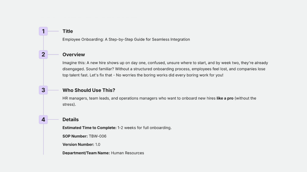 ✅ SOP so clear, even your intern could onboard the next hire.