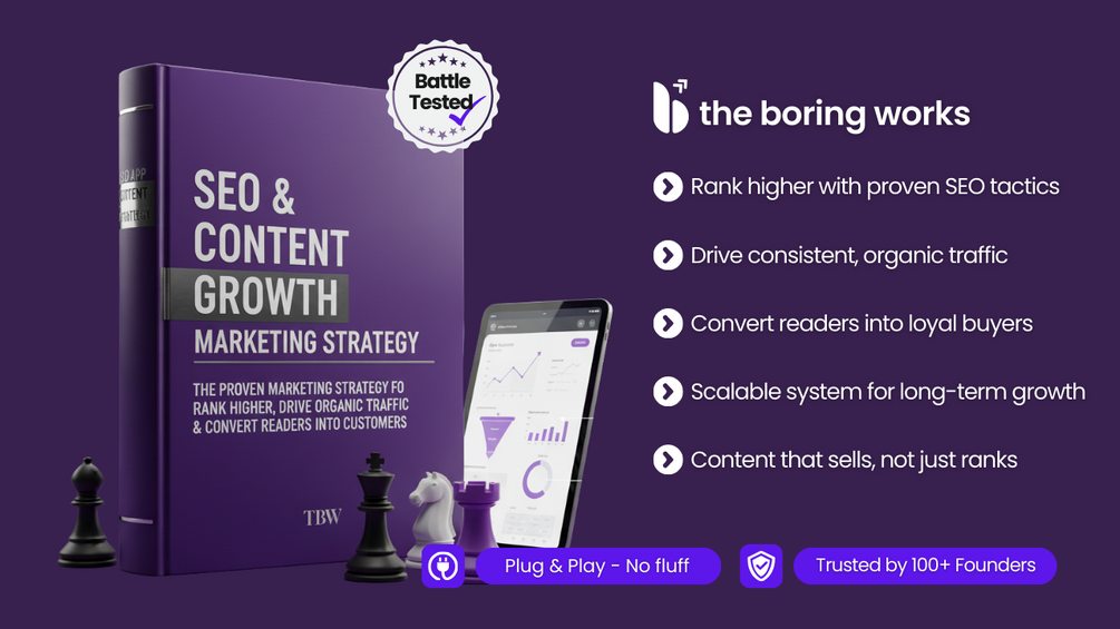Say hello to the SEO & Content Growth Marketing Strategy — a battle-tested, step-by-step system built to actually get you organic traffic that matters. We focus on ranking, building trust, and creating content your audience actually wants to read.
